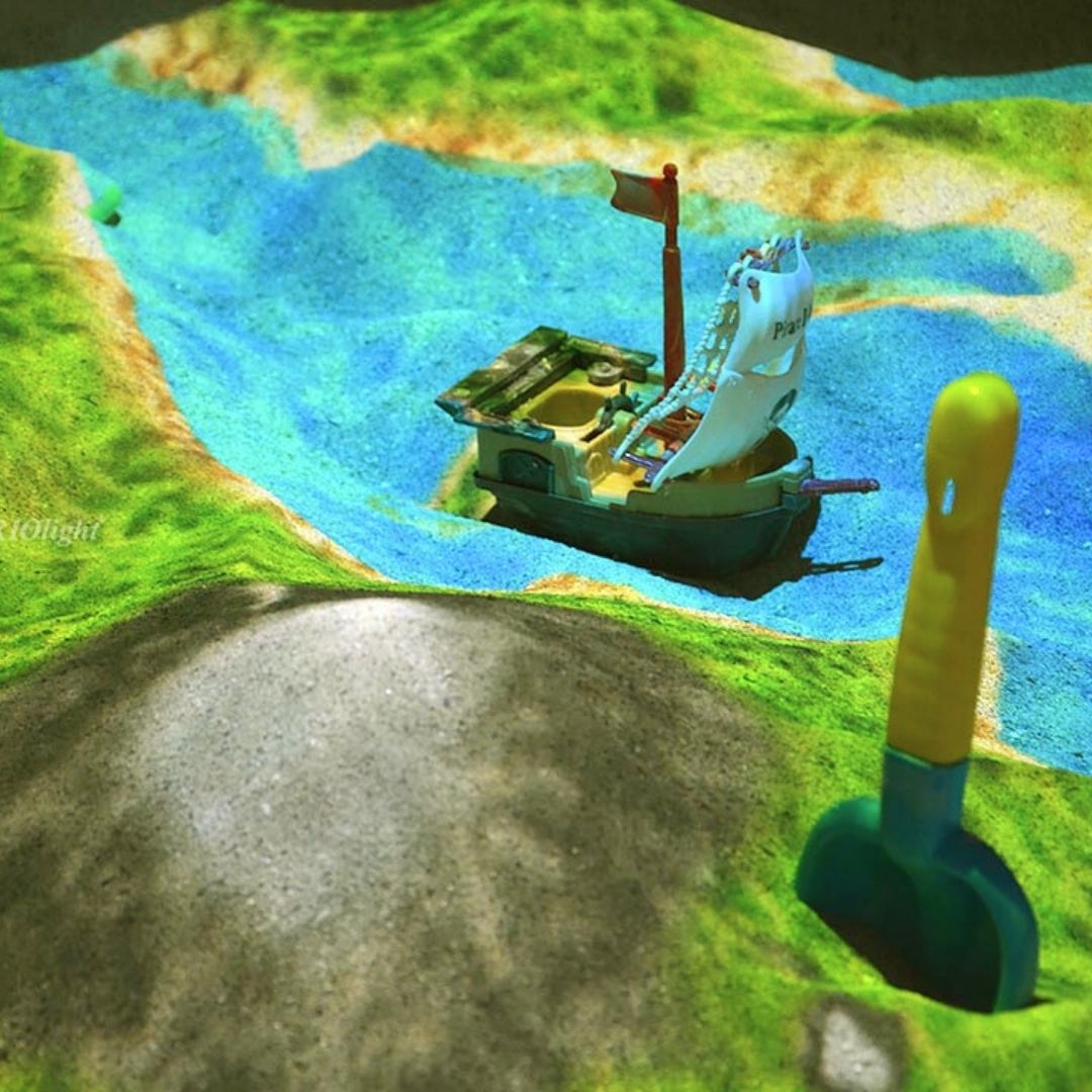 Наш пісок має оптимальну зернистість – він легкий, приємний на дотик, не пилить і не містить сторонніх домішок. Завдяки цьому система точно розпізнає рельєфи, а діти можуть з комфортом створювати інтерактивні пейзажі, гори, річки та об’єкти, що оживають на екрані.
